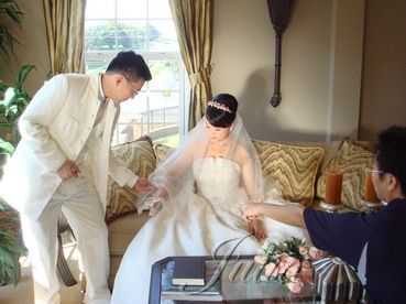 ju還是得克服這樣的環境來幫新娘換造型